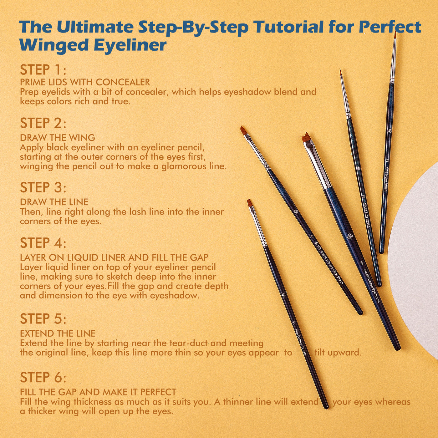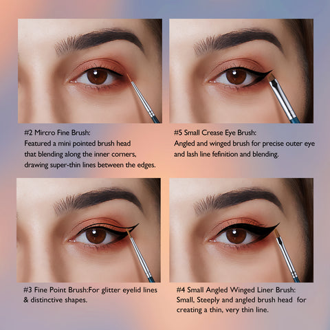 Ultra Fine Series - 5pcs All in One Pro Detail Eyeliner Brush Kit