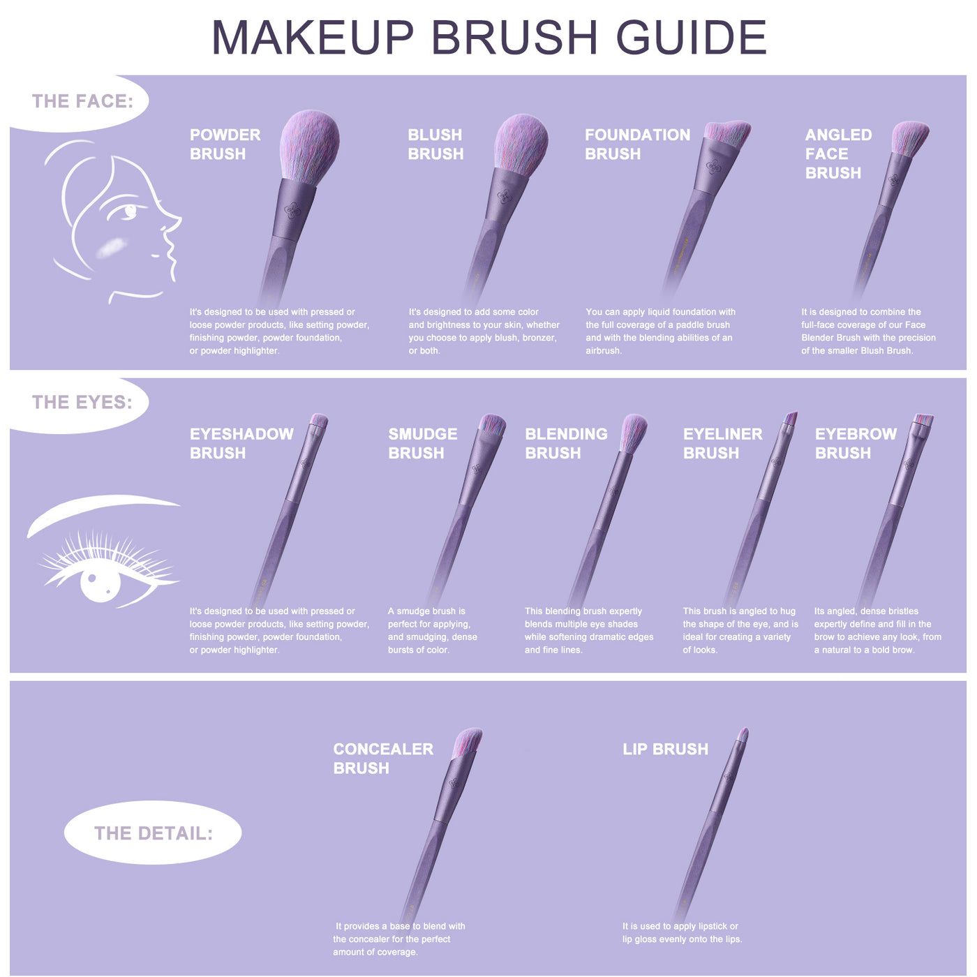 This set features 11pcs vegan, travel-friendly face and eye brushes for sculpting, highlighting, setting, and more. Create a flawless full face of makeup on the go with this 11pcs makeup brush set. Master all of the essential application techniques for your complexion, from buffing to baking with expert results. You will receive a set of complete basic makeup brushes in a convenient, easy-to-carry pouch. It's the perfect size for holding all your makeup when you're on the go!