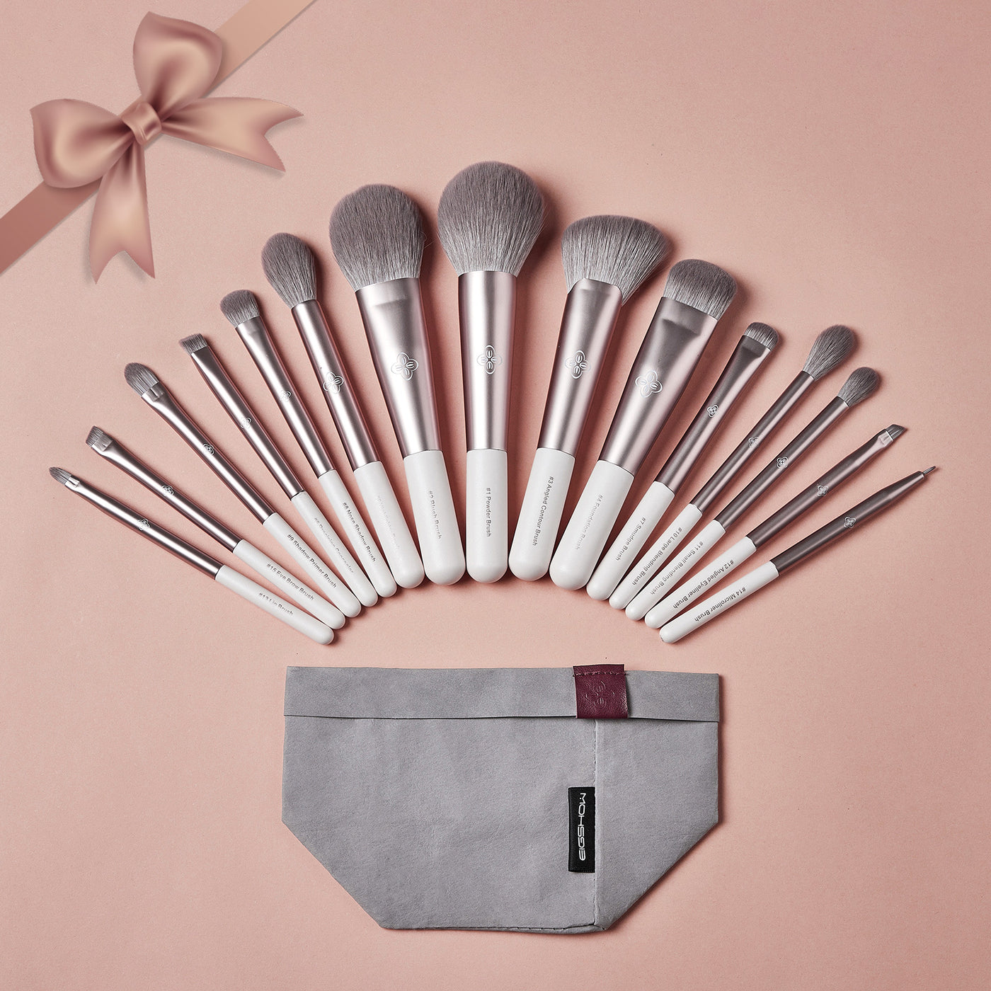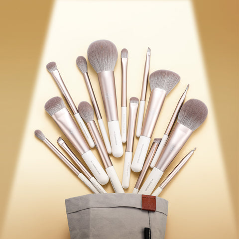 EIGSHOW BEAUTY's GENTLE WIND SERIES is the answer to the professional brush kit for makeup artists. This multi-tasking face brush + eye brush kit was designed to hug the natural blending and sculpting of eyes and face which was built to work with gel, powder, cream and liquid products, and it comes with 15 brushes that perform a wide variety of makeup tasks, plus a washed kraft paper bag with its own carrying case that’s just the thing for your makeup brush storage needs.