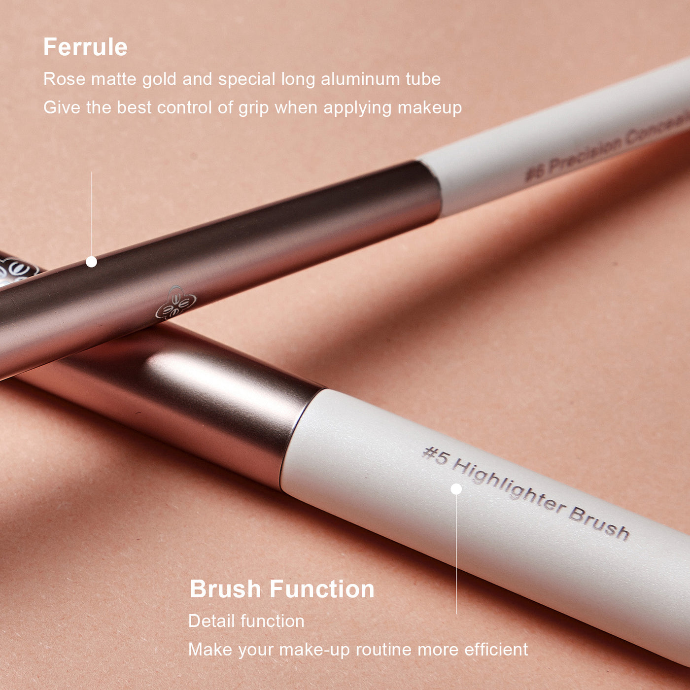 5# Highlight Brush – It's a slim, tapered brush designed for precision highlighting on the cheekbones and brow bones to achieve a strobing effect.