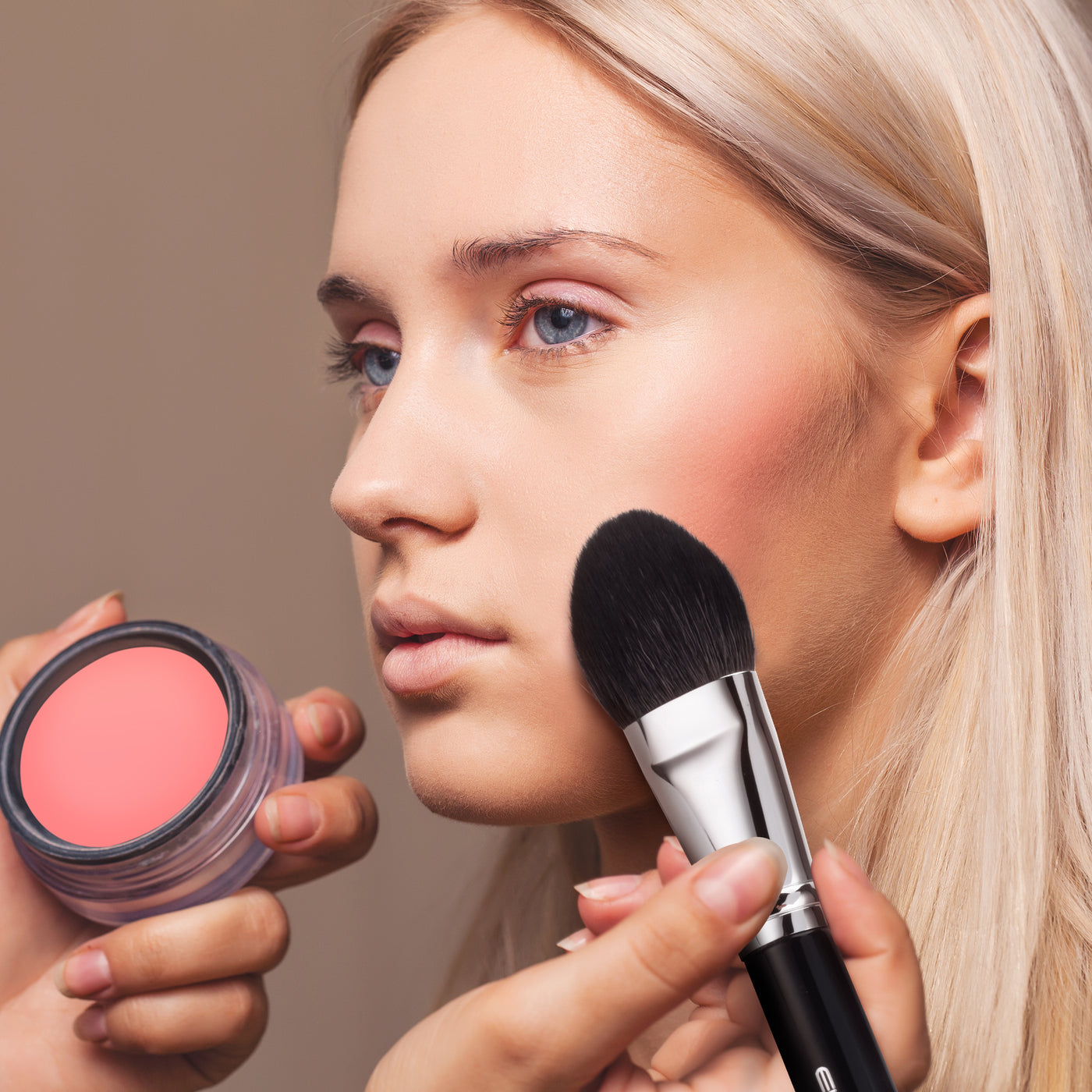 This fluffy brush delivers a natural flush of color. Make sure to tap off any excess product before applying it onto your face. Choose a blush shade that complements your skin tone and desired look.