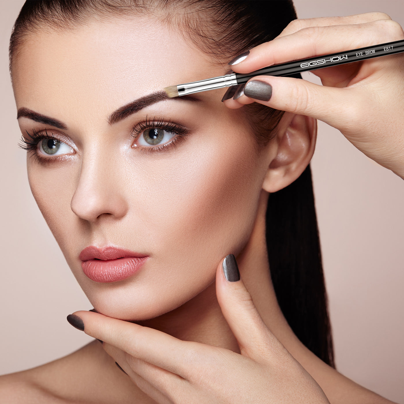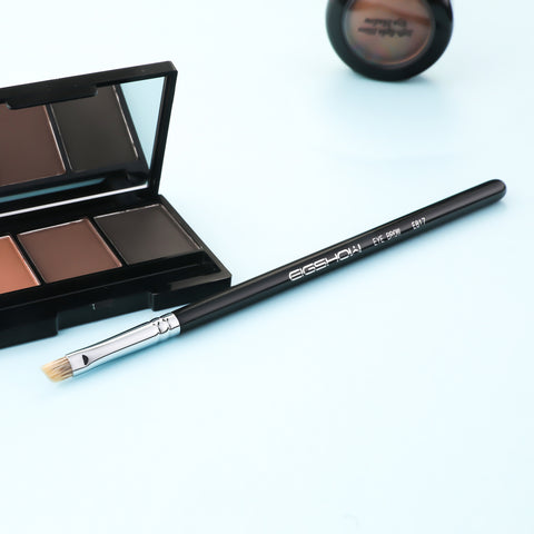 Use the E817 Eyebrow brush to dip into your favorite eyebrow pomade or eyebrow powder. Fill in your brows starting at the arch and toward the tip. For a more natural look, apply hair-like strokes to the front of your brow. For a defined Instagram brow, you can define the under edge of the brow first, and then fill in the rest of the brow while blending the inner end with the spoolie brush. Remember to use a light hand as you want your brows to remain natural-looking on its inner end.