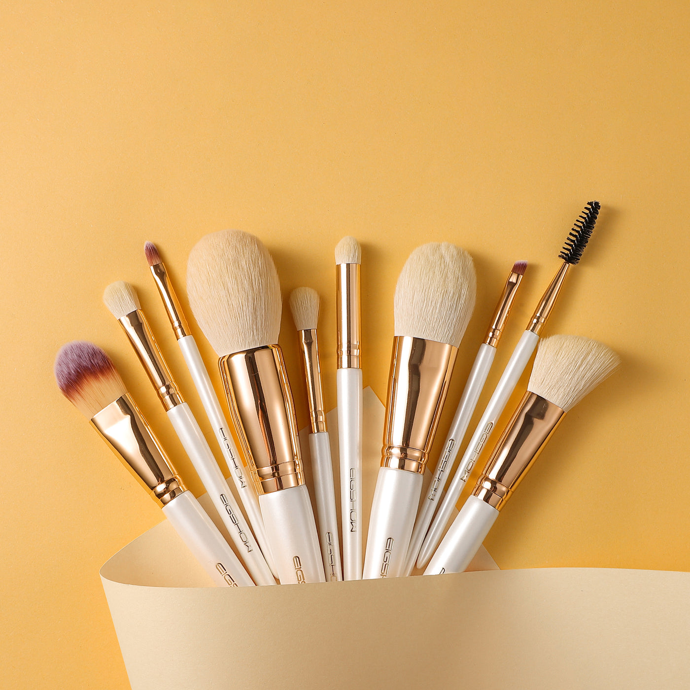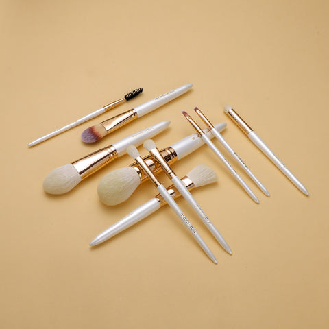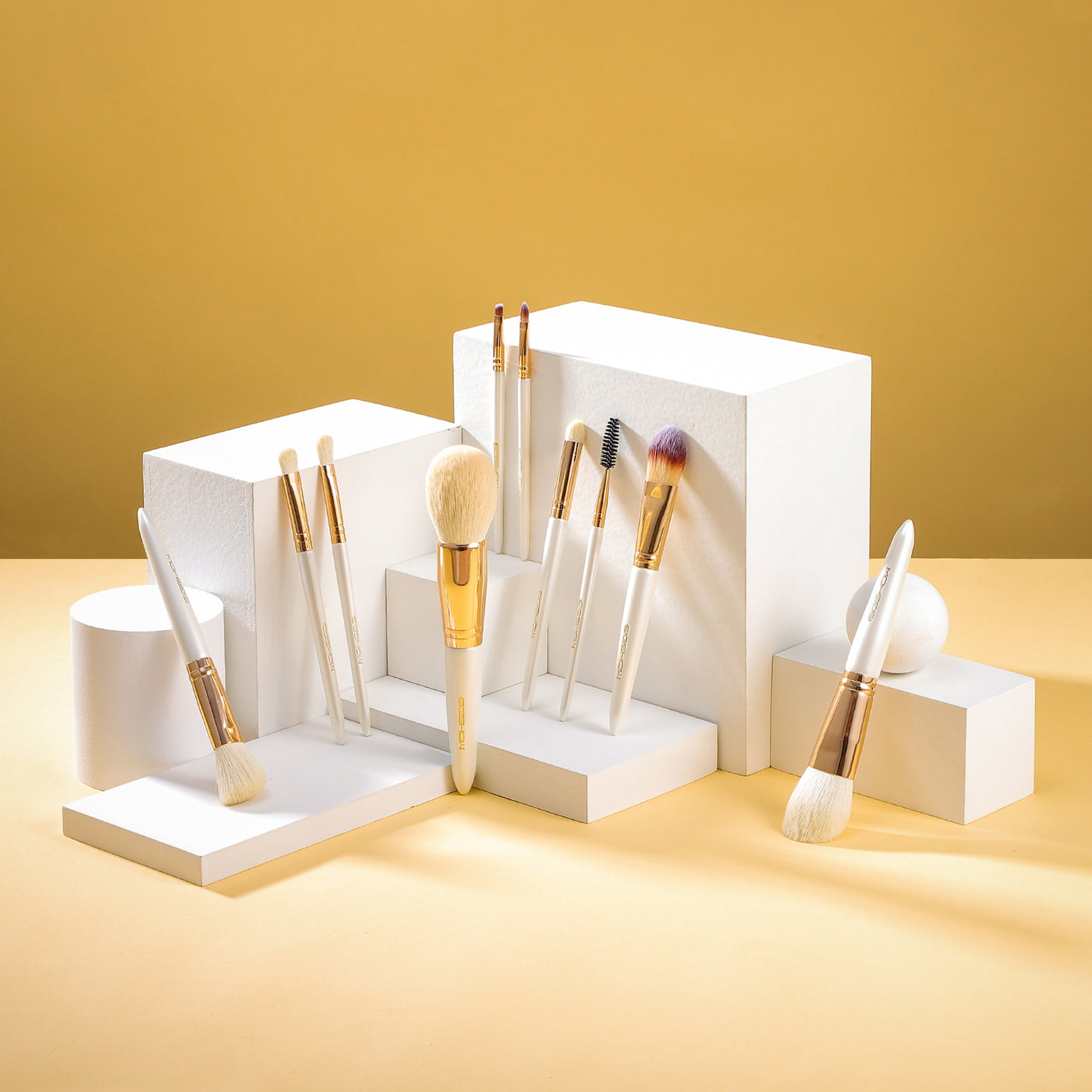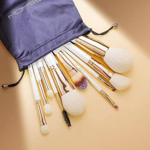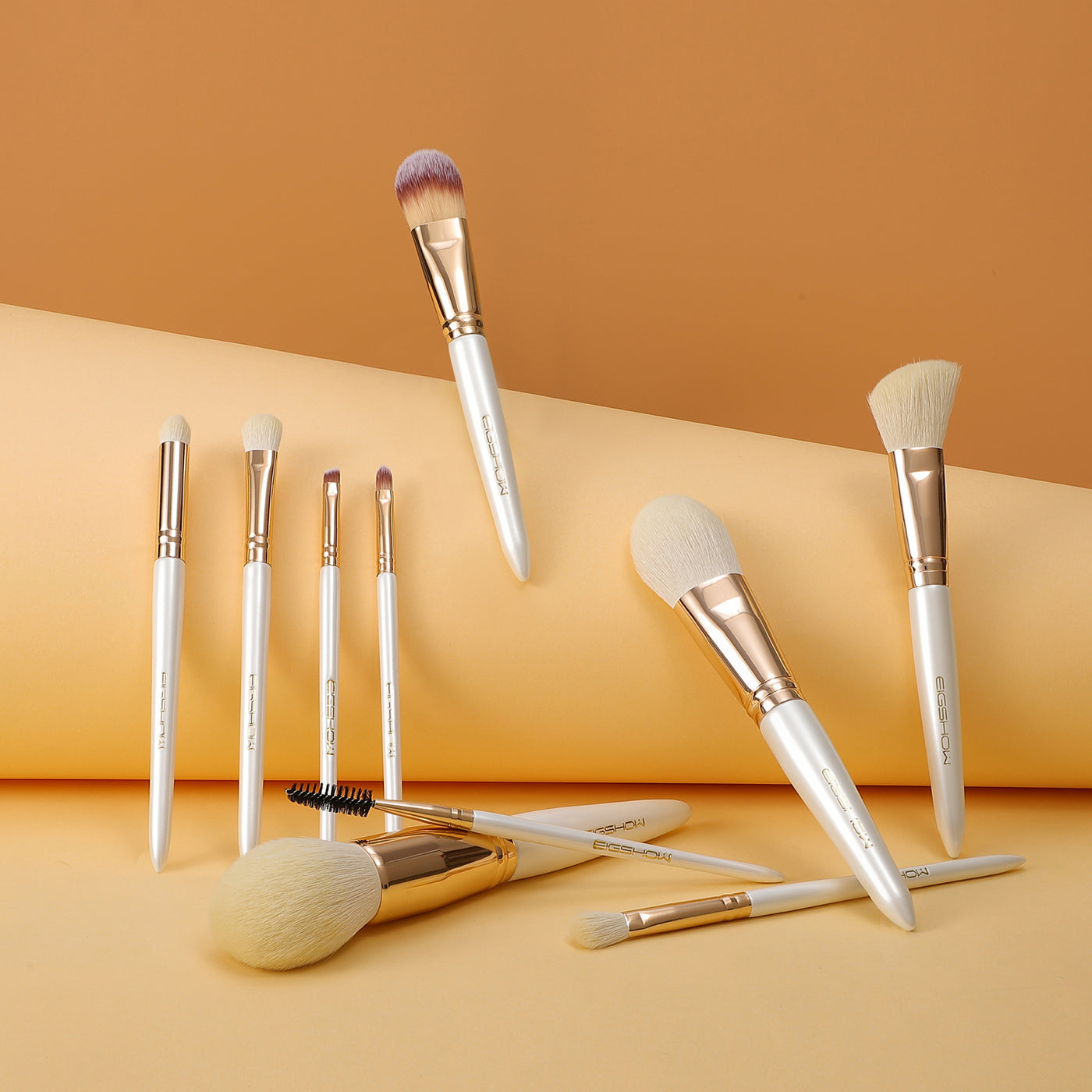 This EIGSHOW 10-piece vegan brush set is made of high-quality nanofibrils with champagne gold handles. These are perfect for beginners and daily use. Complete with brushes for foundation, concealer, powders, and eyeshadows, you may store them in the included washable drawstring pouch.