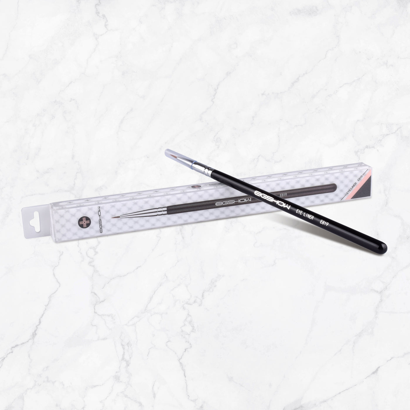 The E819 Eyeliner brush is a cylindrical brush with a very small tip for applying the sharpest and cleanest eyeliner. This brush is also excellent for detail work, especially for body painting. It uses hypoallergenic vegan nanofiber bristles, making it suitable for liquid, gel, cream, or any type of eyeliner.