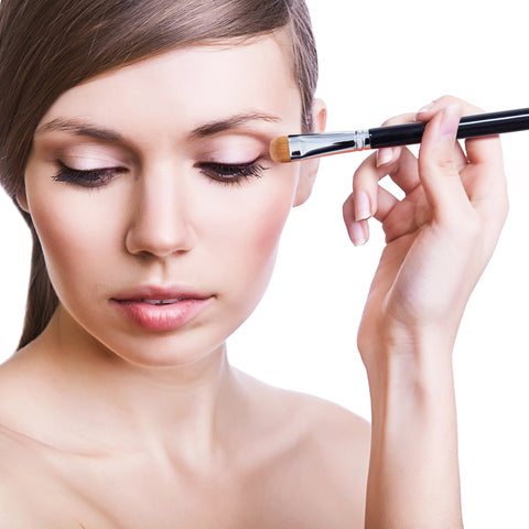 Dip the E829 Eyeshadow Brush into your crease shade. Gently buff it out into your crease while holding it at the end of the handle. Deepen your crease with a darker shade. For applying your center shimmer shade, pick up the pigment using the flat side of your E829 brush. Pat on the shimmer to the center of your lid and even the inner corner. Smoke out your lower lash line by blending your liner out with dark eyeshadow.