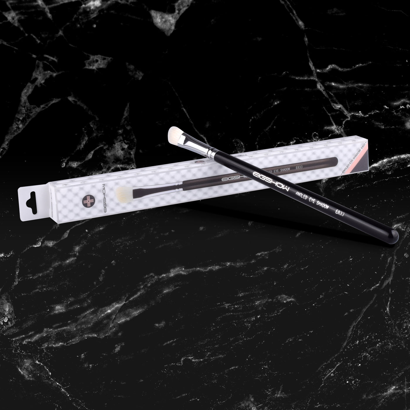 This brush has an angled brush head, ideal for the precise application of shadow to eyelids.
