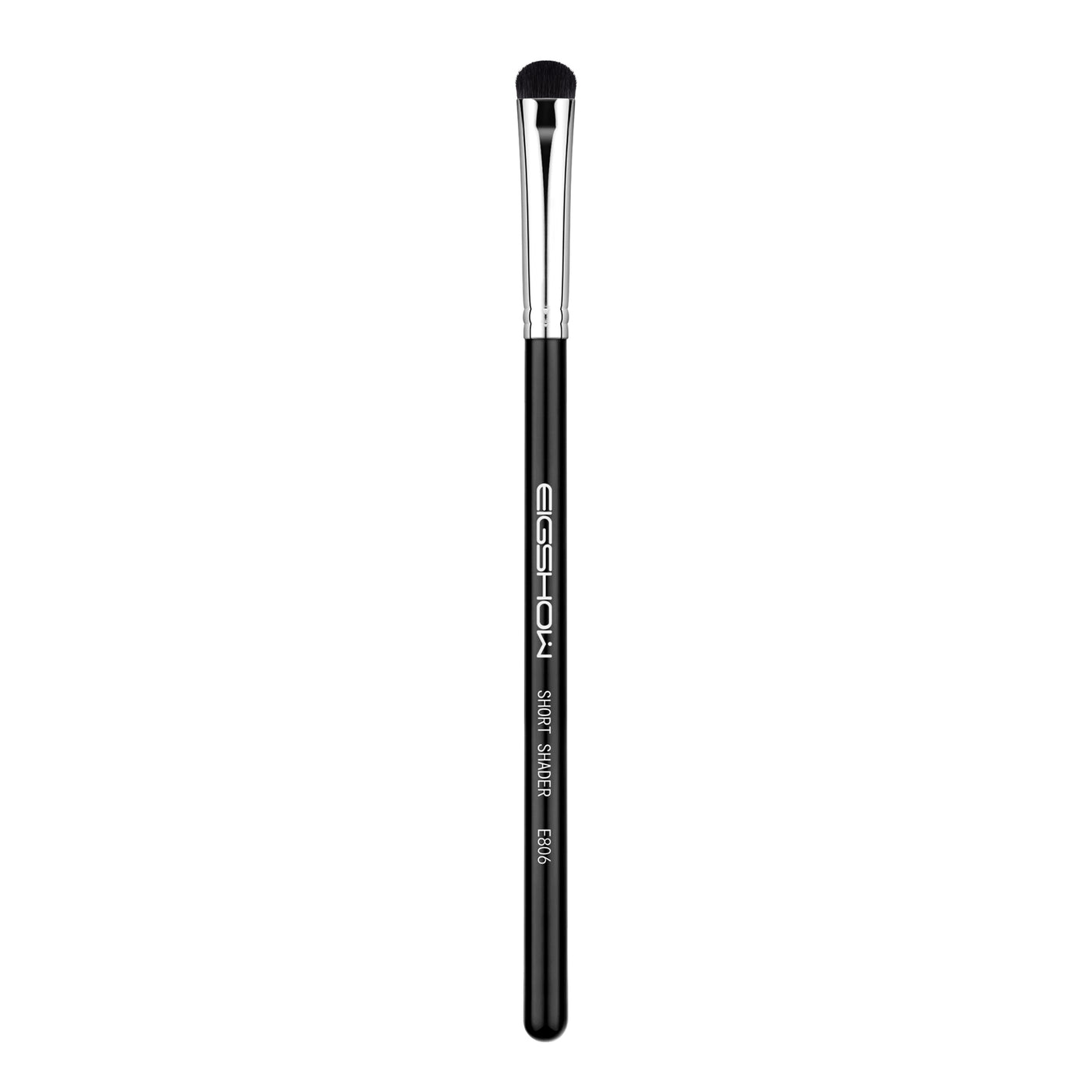 The E806 Short Shader eyeshadow brush is a short flat brush with densely packed natural bristles. It is perfect for picking up powder eyeshadow and applying it to a specific area on your eyelids, such as the center, or the lash line.